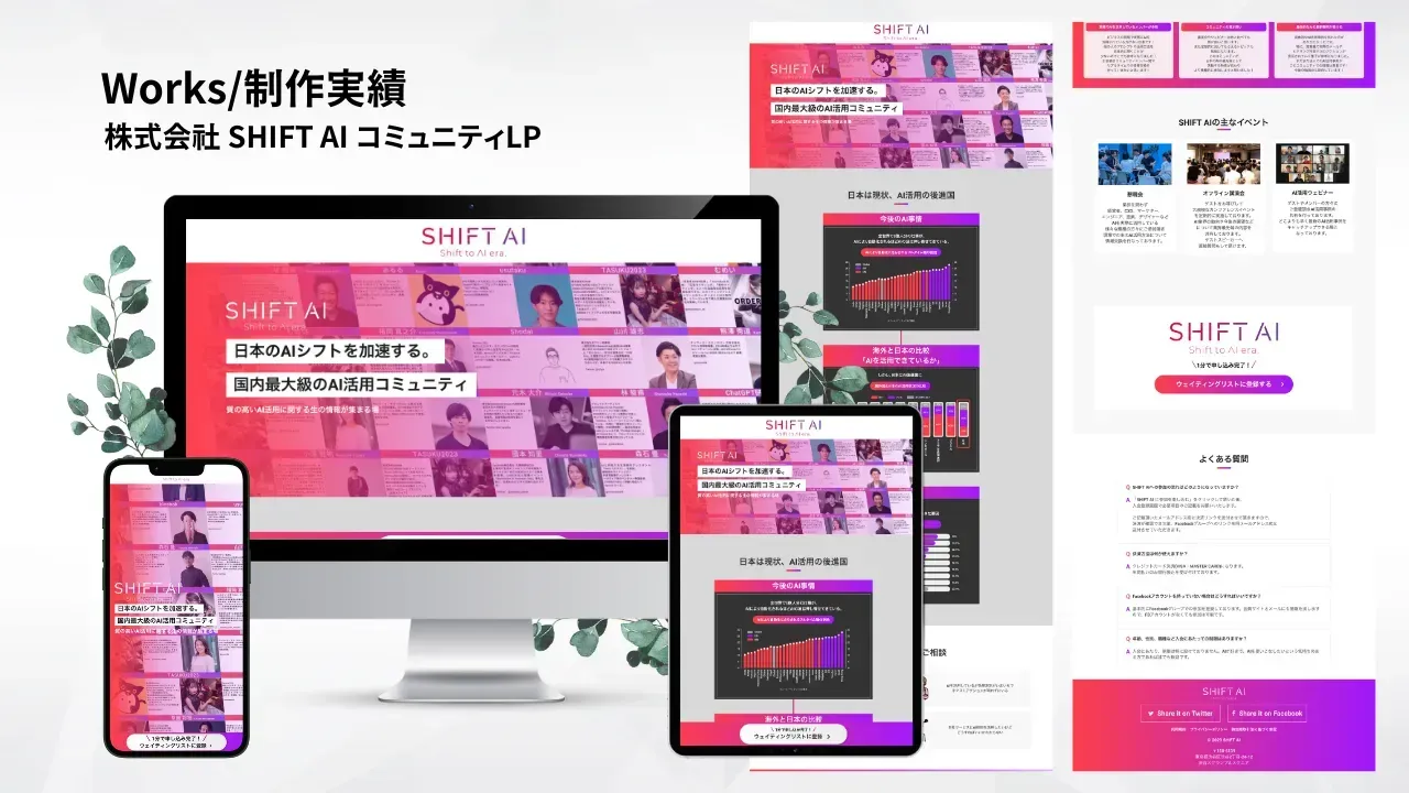 株式会社SHIFT AIが運営するオンラインコミュニティのLPを制作させていただきました。公式LINEアカウントへの登録を促すような設計にしております。
